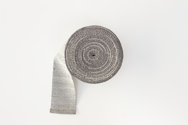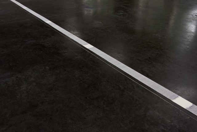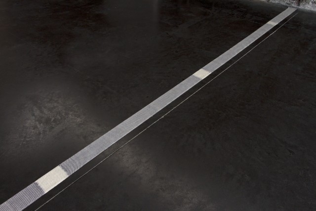 Relevé, 13 pas, 2023, tissage, teinture, laine, coton, 1400 x 8 x 0,1 cm.
